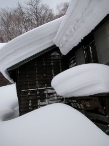 内湯の屋根は雪の重みで崩れ湯も張られていませんでした。