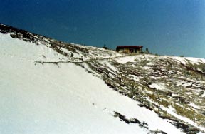 ロープウェー山麓駅の約100m上にある県営駐車場から峰の茶屋(避難小屋)経由、那須岳(茶臼岳)に登り、三斗小屋温泉へ約3時間の山行。大黒屋旅館の木造りの湯と岩風呂に入り(通常日帰り利用不可)、煙草屋旅館の露天風呂につかり(500円)下山。避難小屋から峰の茶屋は約20分、少しきつい登りになります。峰の茶屋は風を見計らって越えます。