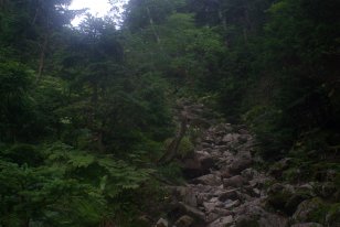 易老岳まで延々樹林帯のきつい登り、標高差1474m、ザックも重く光岳小屋まで7時間かかりました。