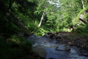 まず本流に下りるまでが大変。小滝を超え、左に左に巻いて下降。